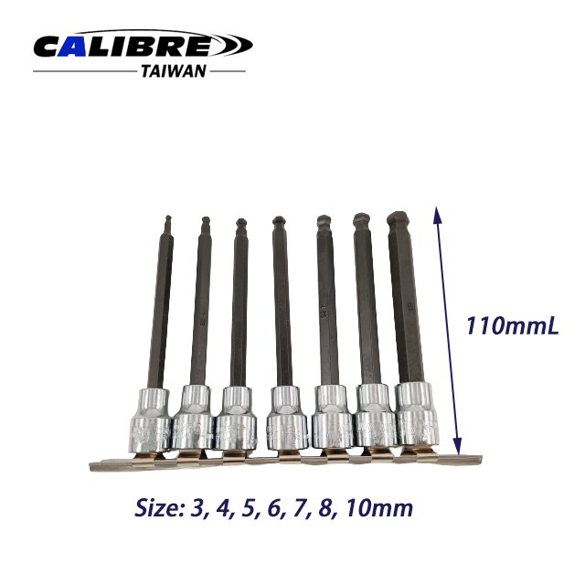 • TAIWAN CALIBRE 7PC 3/8 "Dr Long Ball End Hex Bit SAE Socket Set